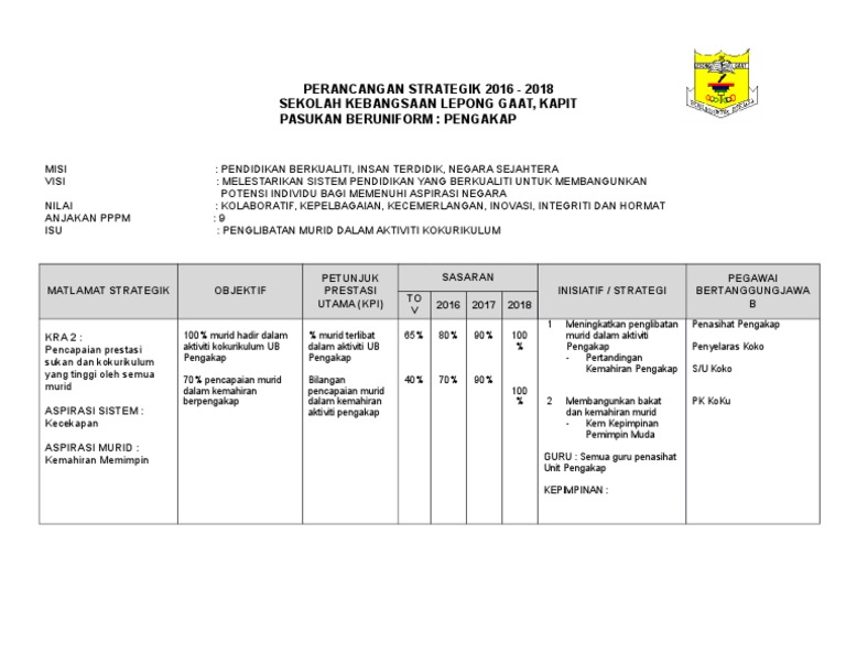 Matlamat bidang isu objektif strategik petunjuk prestasi 2016 2017 2018 2019 utama(kpi). Bahan pelan pembangunan pendidikan malaysia. Sumber pendidikan > kokurikulum > kokurikulum > contoh perancangan strategik kokurikulum. 3:33 kokurikulum perak 522 просмотра. Strategi pelaksanaan bagi mencapai matlamat strategik kurikulum.