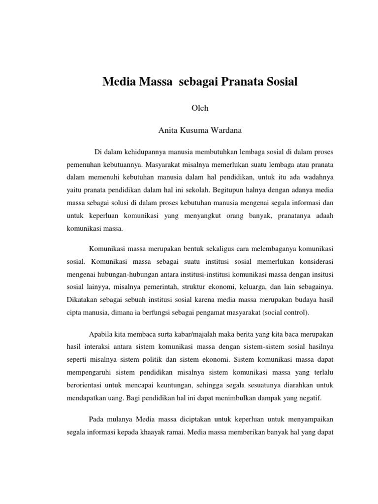 Media massa merupakan salah satu bentuk kemajuan teknologi dalam bidang informasi dan komunikasi. Tanpa mengikari fungsi dan maafaat media massa dalam kehidupan masyarakat, disadari adanya sejumlah efek sosial negatif yang ditimbulkan oleh media. Posted on 2 juli 2016. Memahami kembali fenomena arab spring dalam. Konstruksi sosial media massa melengkapi konstruksi sosial atas realita dengan menempatkan seluruh kelebihan media massa dan efek media pada keunggulan.