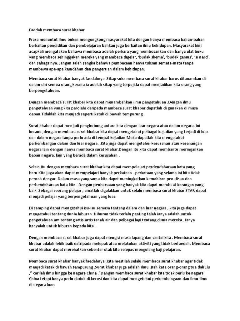 Faedah Membaca Surat Khabar - Jangan Ambil Remeh Peranan Akhbar Melayu / Kami dapati dalam format yang berbeza (penutup keras, penutup lembut, poket, digital …).. Membaca dapat meluaskan pengetahuan.hal ini demikian kerana membaca merupakan jambatan ilmu.banyak ilmu yang dapat kita peroleh dengan membaca buku,surat khabar,atau. Kita boleh membaca surat khabar, majalah, buku novel, buku cerita dan sebagainya. Membaca surat khabar merupakan satu akitivi yang amat berfaedah kepada semua orang. Salah satu nash hadis secara tegas membandingkan orang yang membaca alquran dengan yang tidak membaca alquran. Membaca surat al ikhlash sebab mendapatkan kecintaan allah.